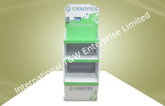 Πράσινες στάσεις επίδειξης χαρτονιού cOem το /ODM με τα διευθετήσιμα ράφια για τα προϊόντα υγειονομικής περίθαλψης