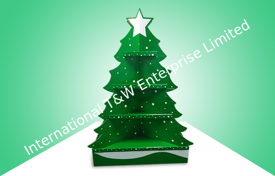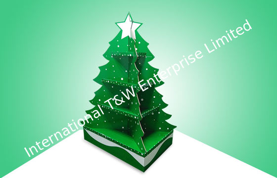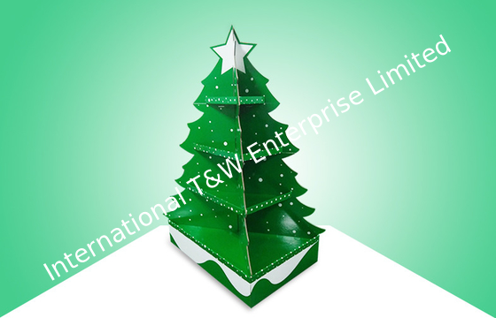Πράσινη επίδειξη παλετών χαρτονιού χριστουγεννιάτικων δέντρων για την προαγωγή των παιχνιδιών, ευδιάκριτο σχέδιο